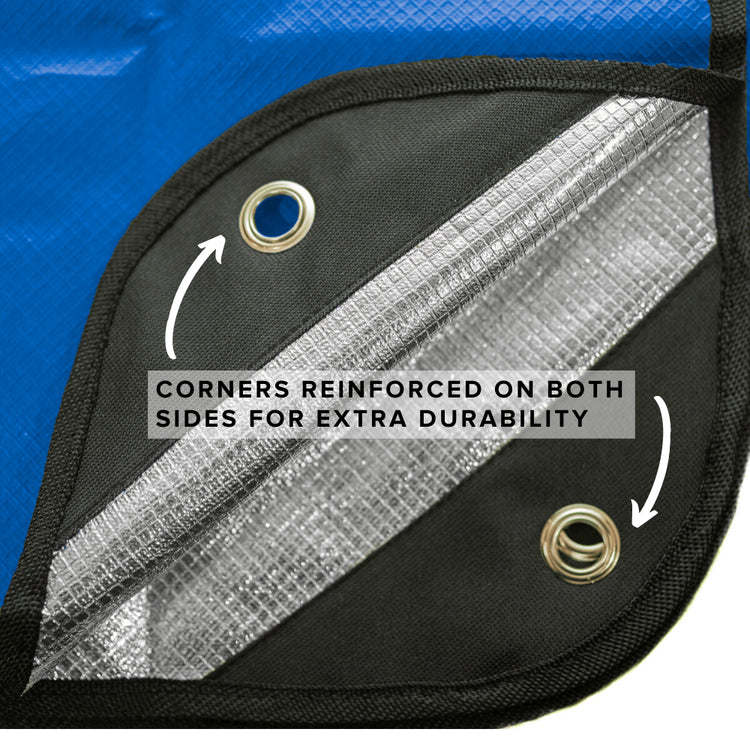 4 REINFORCED TIE-DOWN GROMMETS:We test these grommets constantly and regularly make improvements. This can be hung with ease or secured to reflect/deflect heat, and create a waterproof shelter.