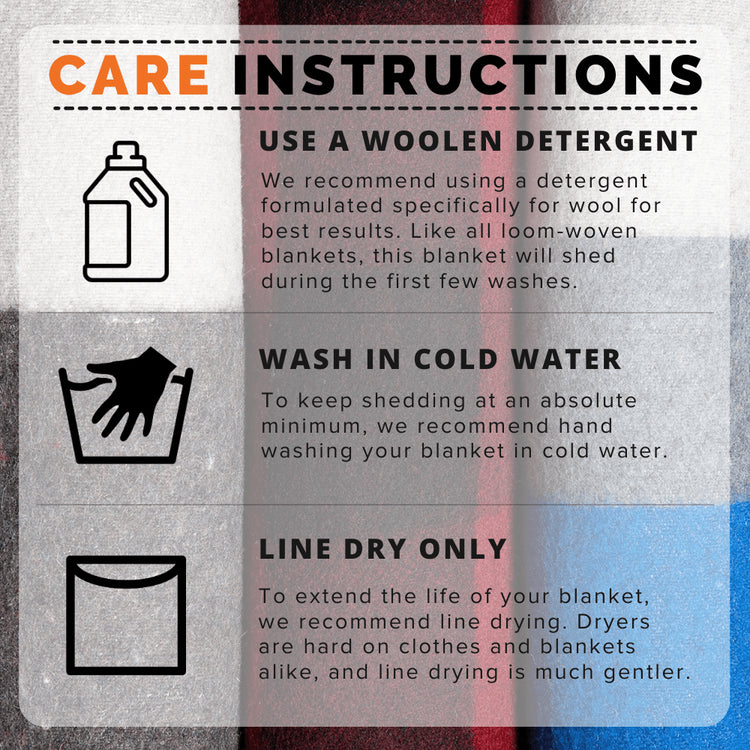 MACHINE WASHABLE - Every Arcturus wool blanket is triple-washed during production so you can use it right away. However, at some point you'll probably want to wash it. We recommend using a detergent formulated specifically for wool for best results. Like all loom-woven blankets, this blanket will shed during the first few washes.
