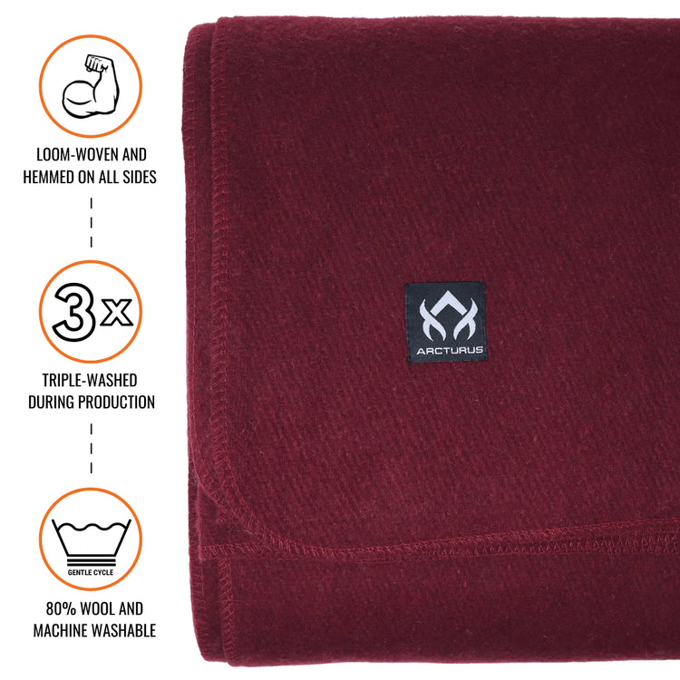 [CLEARANCE] Arcturus Military Wool Blanket - Wine | 4.5 lbs (64" x 88")