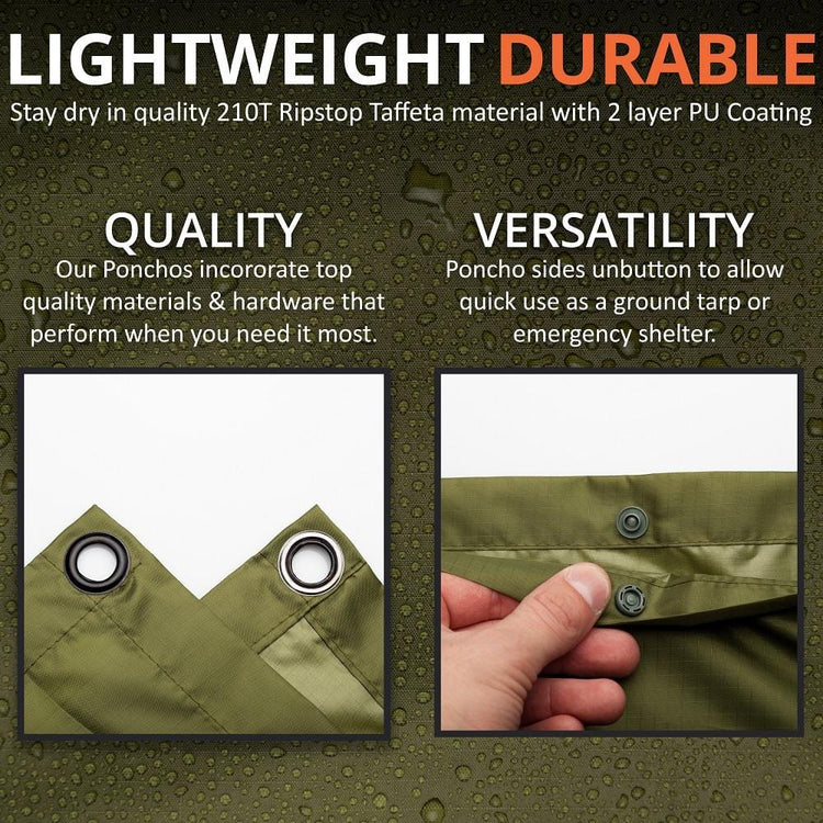 I cannot believe how light y'all made this poncho. Have had military ones for years, slept under them as well as wore them in the field. This one will be going in my pack so as not to miss the next available downpour to test it out for its intended use. And in Texas, you can never be sure when that will be. At least I can use it to fend off the sun until then.