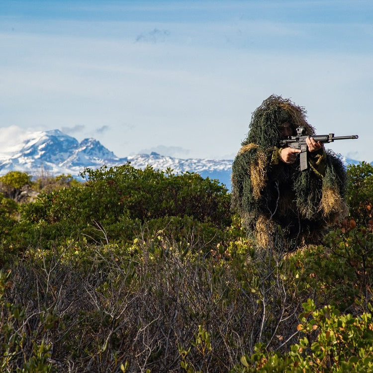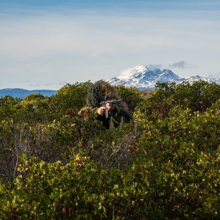 - Complete Ghillie Suit (Jacket, Pants, Boonie Hat with Face Veil and Rifle Wrap)